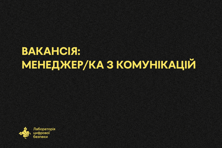 Лабораторія цифрової безпеки — громадська організація, що надає підтримку з цифрової безпеки правозахисникам, журналістам, незалежним медійним та іншим організаціям громадянського суспільства в Україні, а також працює над створенням сприятливого середовища для реалізації цифрових прав людини через проведення аналізу та розробку… Read More »Вакансія: менеджер/ка з комунікацій