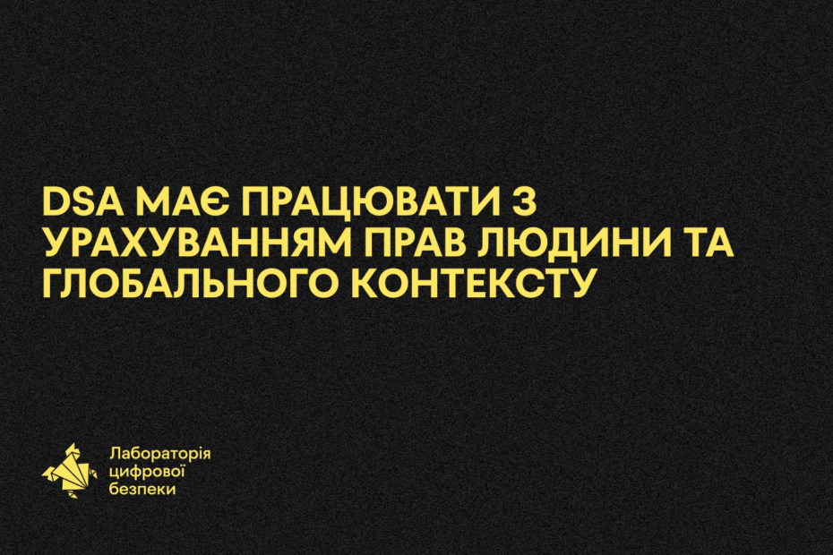 Старший юрист Лабораторії цифрової безпеки Максим Дворовий долучився до розробки та фіналізації документа “Принципи застосування Digital Services Act (DSA) з урахуванням прав людини: глобальна перспектива”, підготовленого DSA Human Rights Alliance. Принципи були оприлюднені та публічно презентовані під час Privacy Week… Read More »DSA має працювати з урахуванням прав людини та глобального контексту