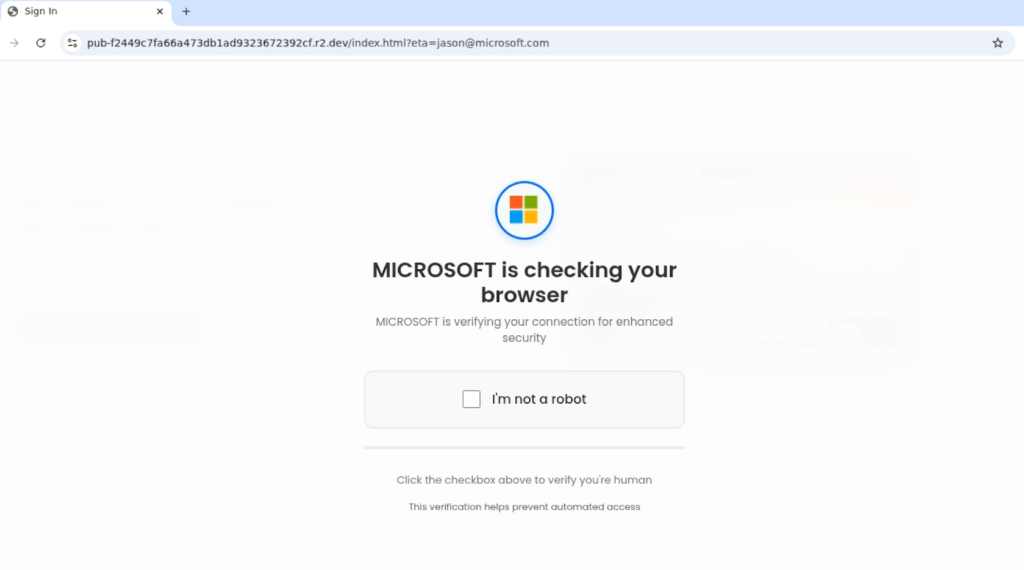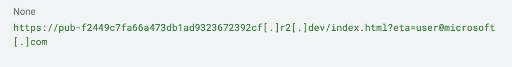 r2[.]dev – phishing page hosted on Cloudflare R2 (R2 allows for free hosting of static assets without egress fees).